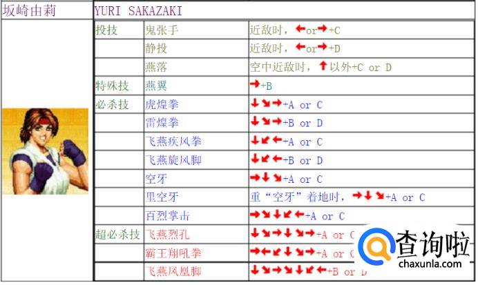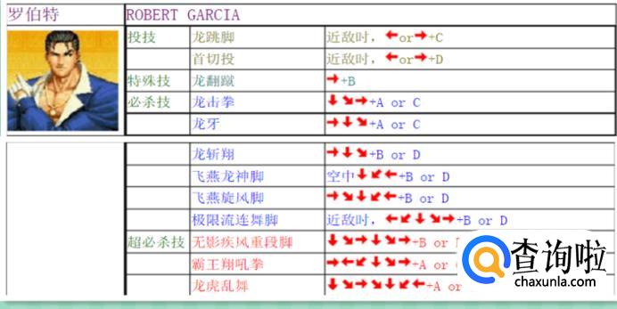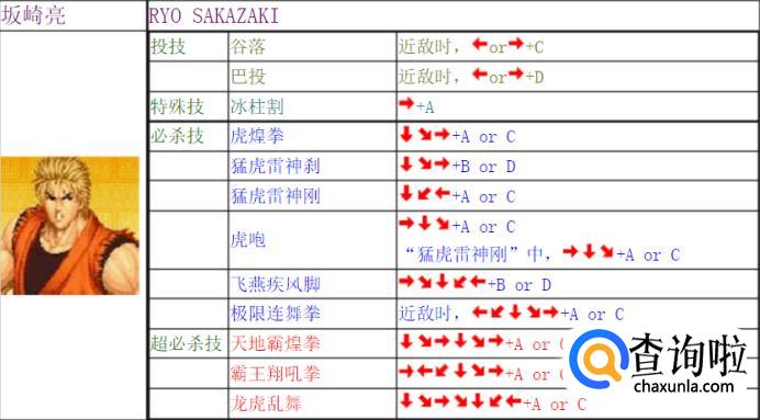 龙虎之拳队出招表:坂崎良、罗伯特、坂崎由莉。