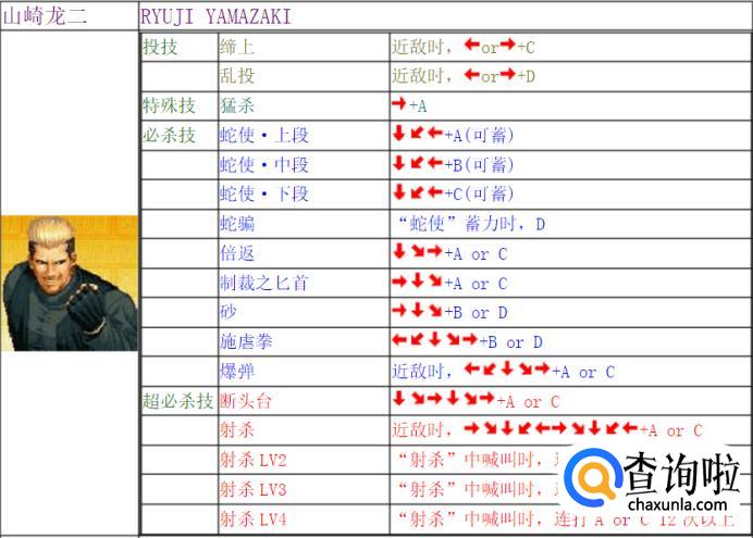 97'特别队出招表:山崎龙二 、布鲁玛莉、比利。