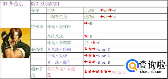编辑专用人物出招表:八神庵、矢吹真吾。