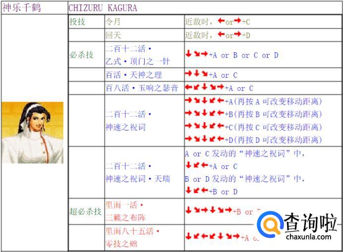 新女性格斗家队出招表:京、不知火舞、神乐千鹤