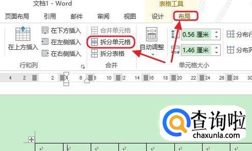 利用拆分表格这种方法也是可以的,操作方法如下:首先将光标定位在第一行表格中的任意位置,然后点击工具栏的“布局”-“拆分单元格”,接着我们同样会发现表格最前面有了空行;