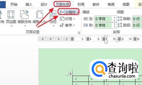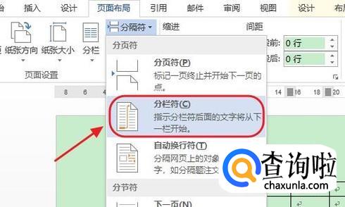 点击分隔符右侧的三角形下拉按钮,然后从中选择“分栏符”,同样也是可以在表格的最前面添加一段空行的;