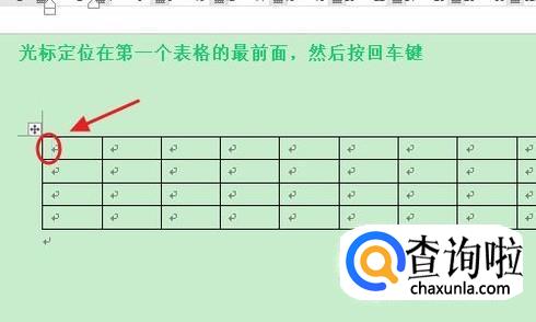 首先,最简单的办法就是将光标定位到第一个表格中的最前面,然后按一下键盘上的回车键,这样表格上方即可多出一个空行,不过很多人以为只有将光标定位在整个表格的最前面才行,事实上光标此时是无法定位在表格前面的;