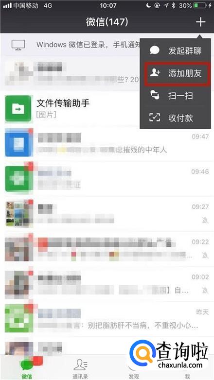 首先点击一个微信聊天对话框,如下图所示。本文以文件传输助手为例。
