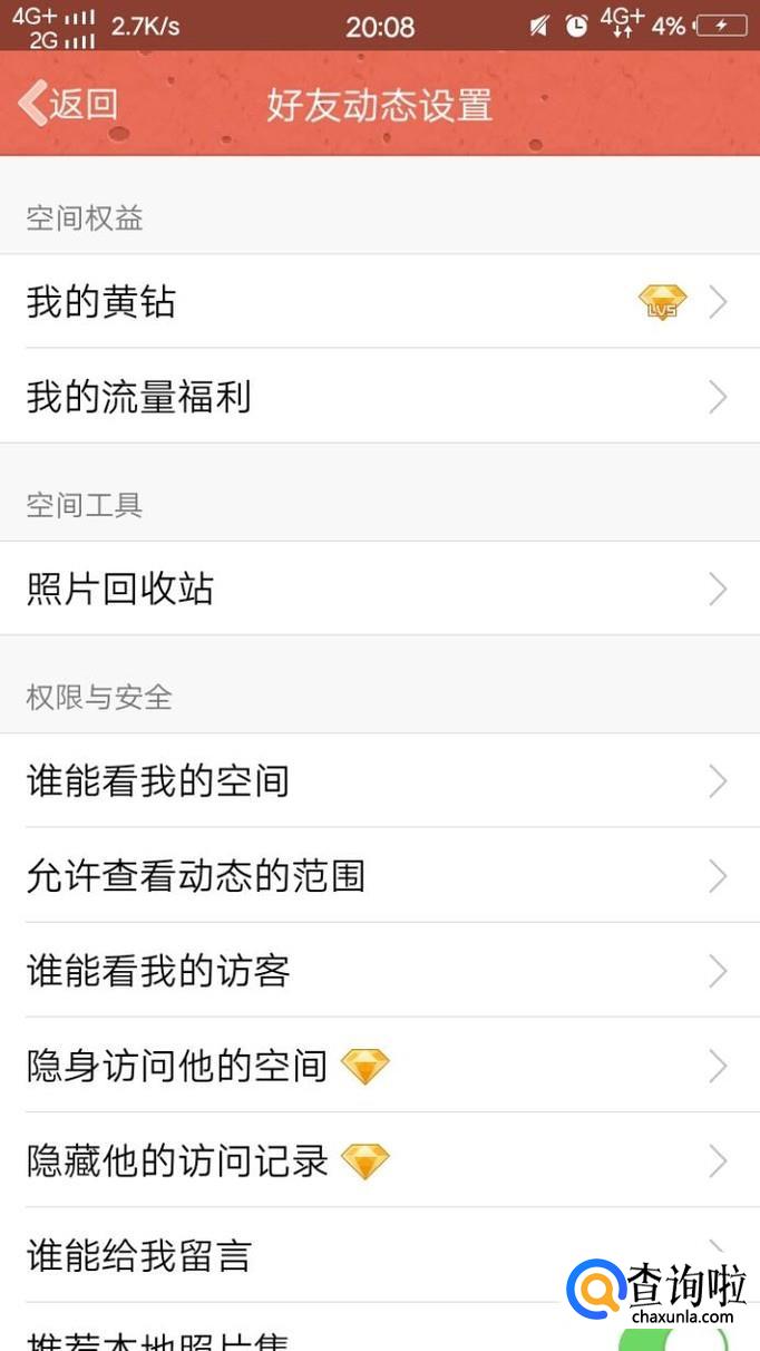 最后点击好友动态权限设置,再根据自己的需求进行设置即可。