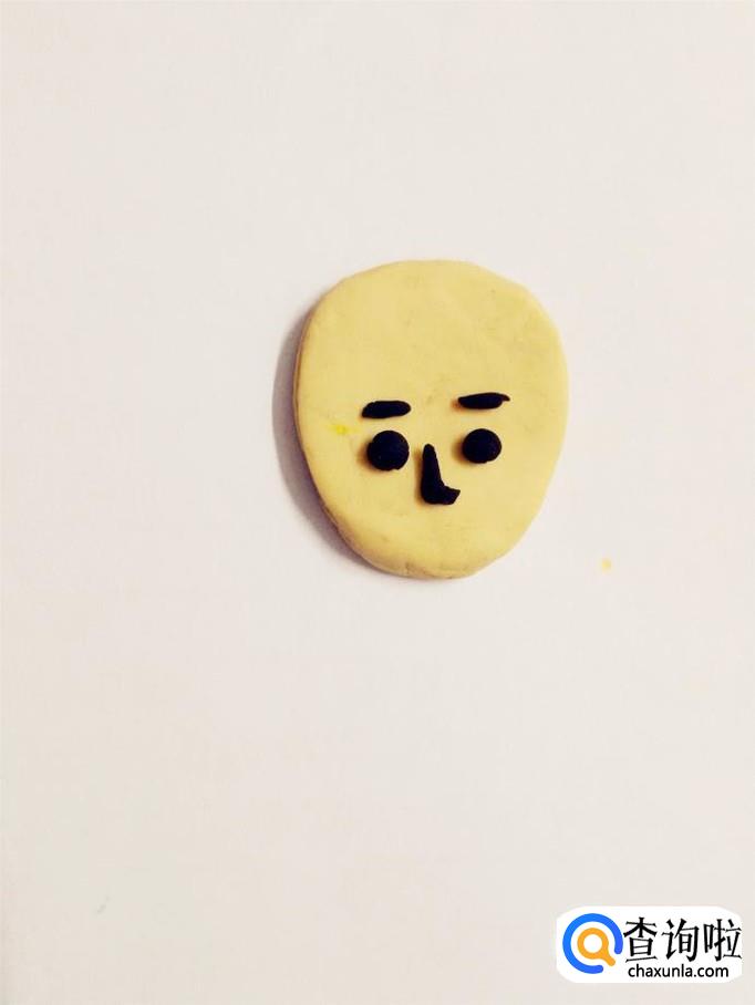 再用黑色搓一个小细条,粘在鼻子下面,当作嘴。