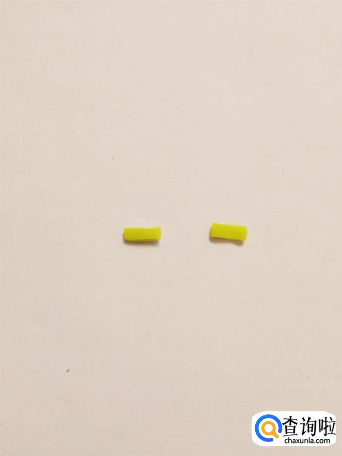 再用两小块黄色捏成两个小长方形,粘在肩上,当作肩章。