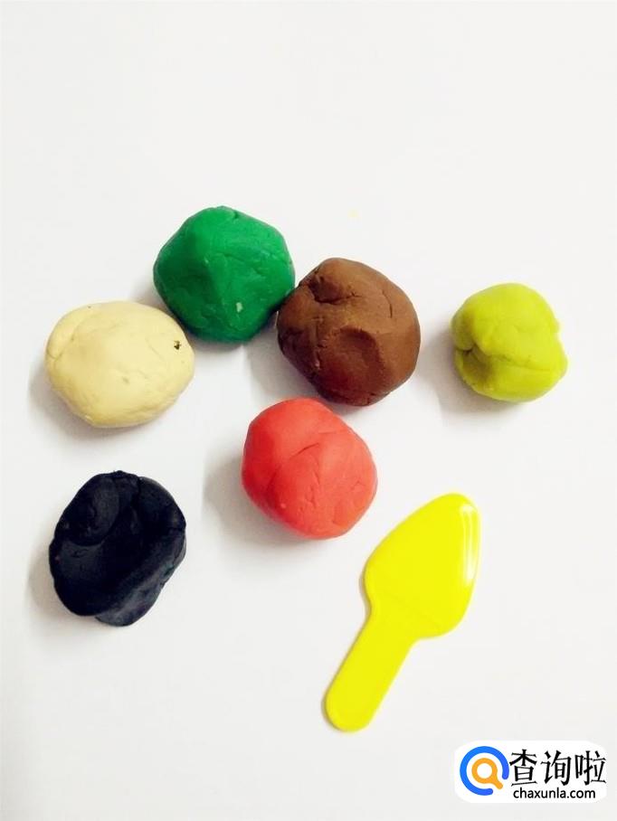 先用一块肉色彩泥捏成鸡蛋的形状,当作军人的脸。