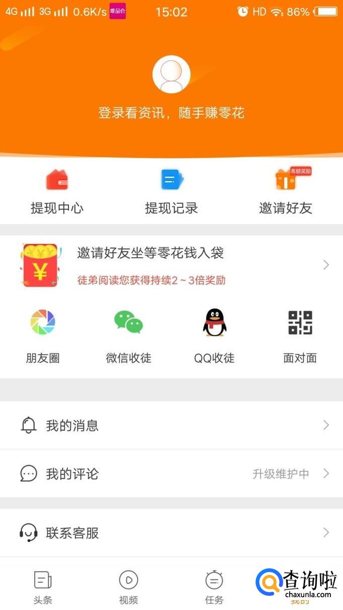 还可以进行注册,登陆后,阅读新闻可以领取金币,金币达到一定额度可以进行提现。