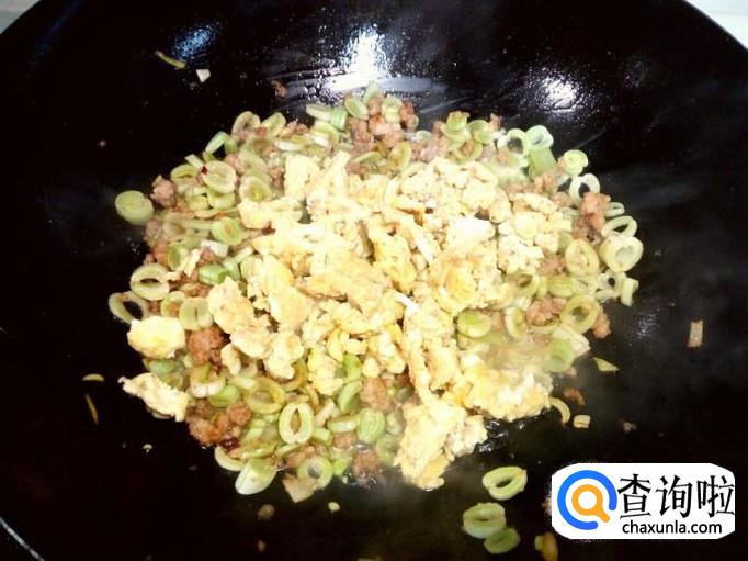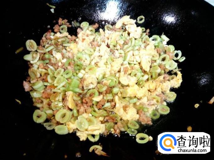 随即放入芸豆,转大火翻炒,不用放盐。炒至芸豆变软,放入炒好的虾酱鸡蛋。