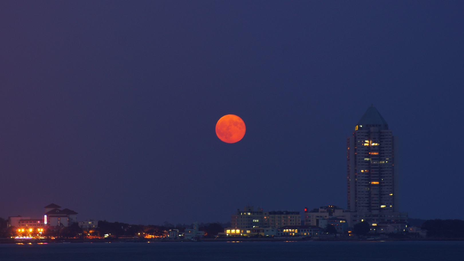 “红月亮”指的是月亮光经过地球大气层到达人类眼睛这段产生的颜色变化。但月全食时也会出现红月亮。这是一种很罕见的情况。“红月亮”又被称为“血月”。月食分为半影月食、月偏食和月全食三种。在这3种月食中,当属月全食最为好看,此时,从地球上看去,月亮并不是从空中消失,而是呈现难得一见的古铜色,也就是平常所说的“红月亮”。