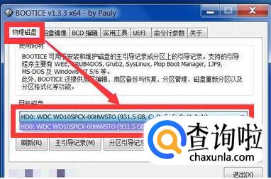 选择进入PE后,打开之前下载安装完成的【bootice】软件,在【物理磁盘】页面中,选择【目标磁盘】,一定要选择需要修复的硬盘,这个可以根据【名称】或者【容量】来判断需要修复的硬盘。