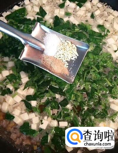 然后我们放入适量的盐,鸡精,胡椒粉,陈醋调味