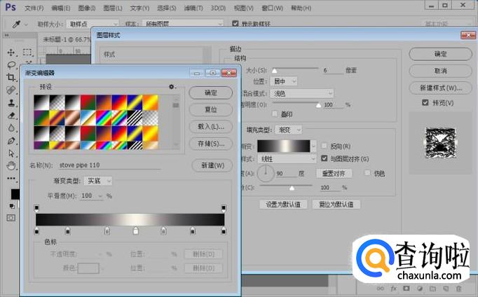 接着,我们给文字图层添加图层样式描边,参数如图,填充类型选择渐变。