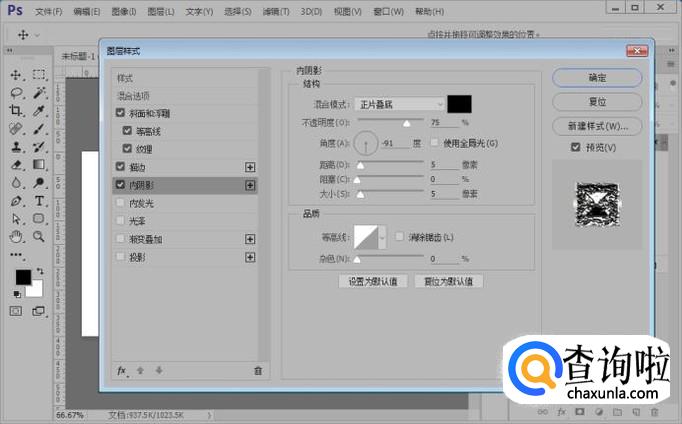 下面,我们给文字图层添加内阴影的图层样式,参数如图。