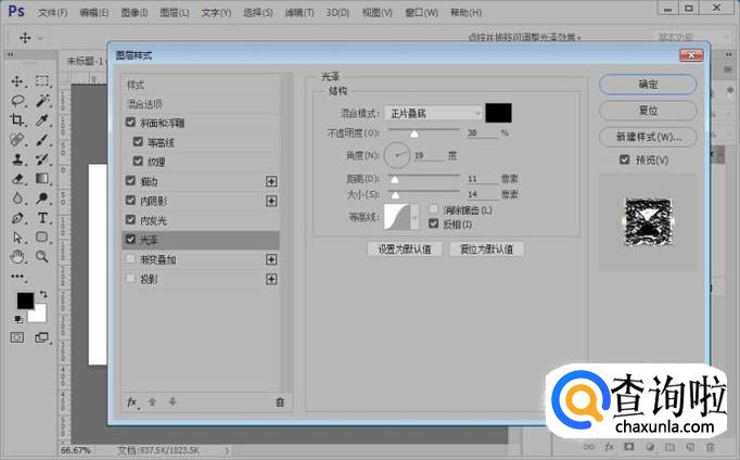 然后,我们给文字图层添加图层样式光泽,参数如图。