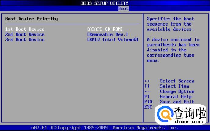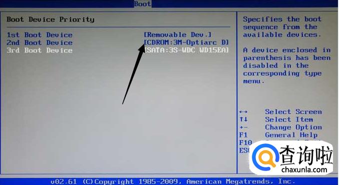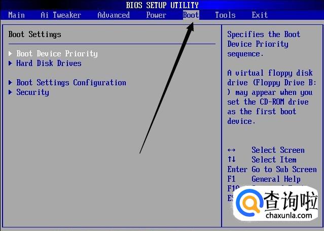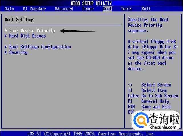 然后我们移动光标,向右走,找到Boot这个选项,然后我们将出现的第一条选项Boot Devive Priority选中。