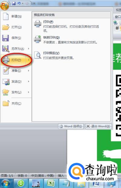 把二维码款式图复制粘贴到word文档中,然后在点击左上角图标,在弹出的下拉菜单中点击“打印”。