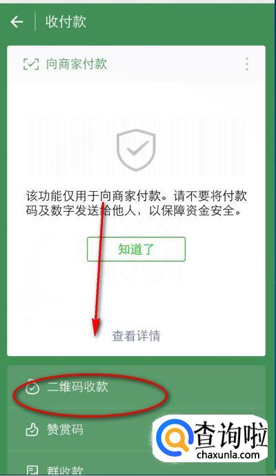 点击下方的“二维码收款”。