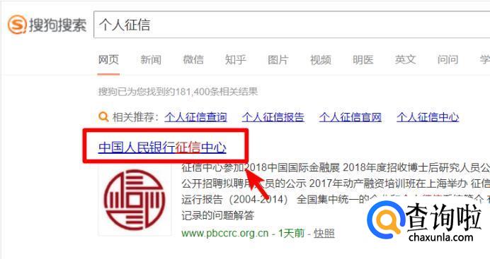 打开电脑,通过搜狗搜索个人征信,进入中国人民银行征信中心。