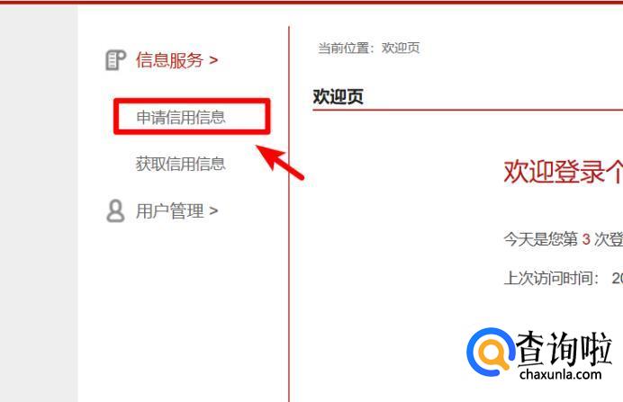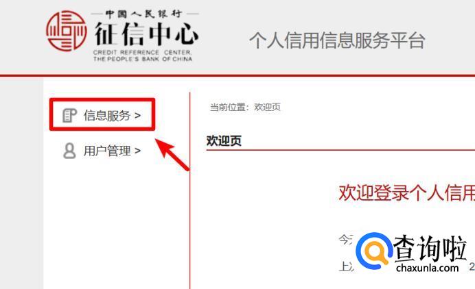 登录成功后进入个人信息服务平台,点击左侧的信息服务。