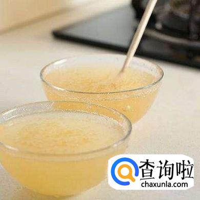 我们取适量的吉利丁粉加入清水煮开后倒入榨好的西瓜汁里面搅拌均匀。