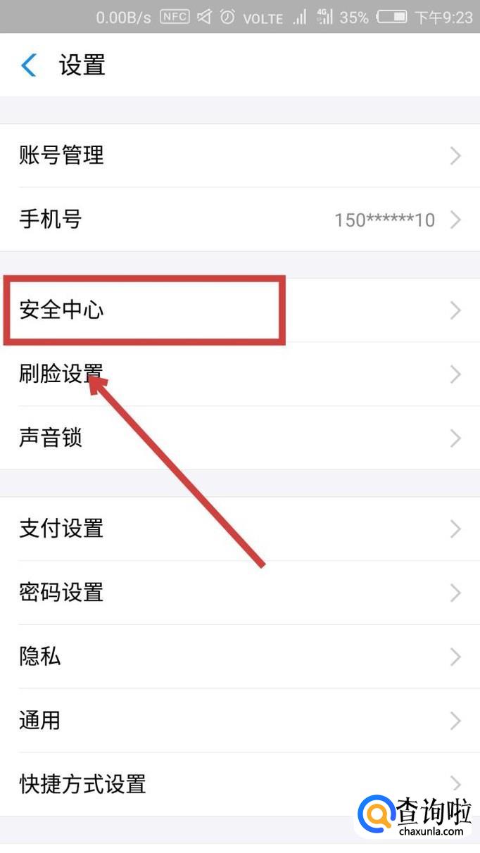 进入到“安全中心”界面,在界面重要找到“暗号”,点击进入即可设置。