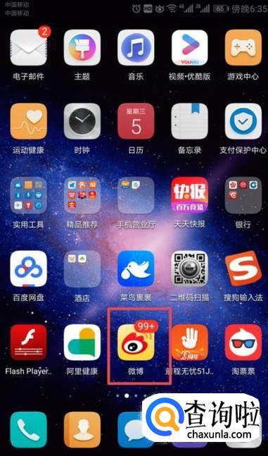 首先,我们打开我们的手机,然后我们点击新浪微博;