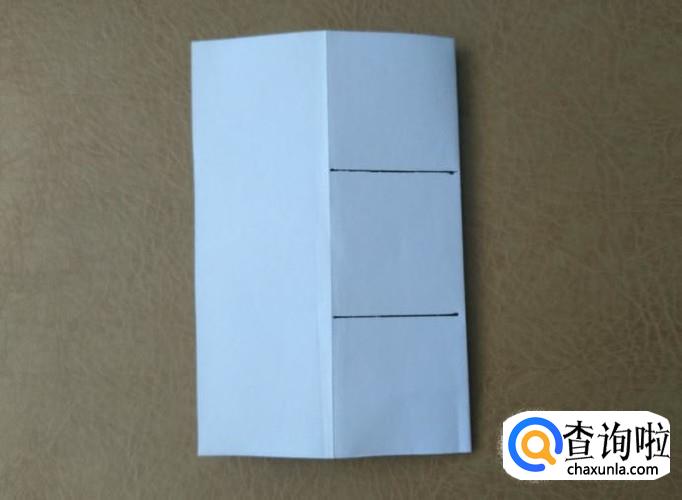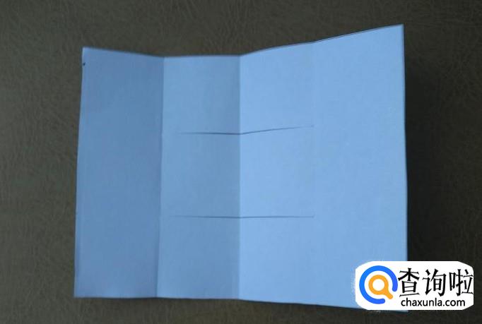 把右侧折向左侧,然后将不开口的一面分成三等份后沿线剪开,再把折纸打开备用。