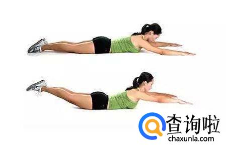 在床上做俯卧动作,将胸部及以上的地方完全探出床外(注意安全),然后挺起上半身(形式背飞),双手从中间往两边做类似蛙泳的划水动作。在提升胸部肌肉弹性的同时也能增强背部的肌肉韧性。