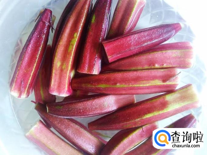 今天买的秋葵是紫红色的,听人家说红色的比绿色的营养高,也不知真还是假的,首先把秋葵的头端和尾部切掉,然后放水里泡洗干净。