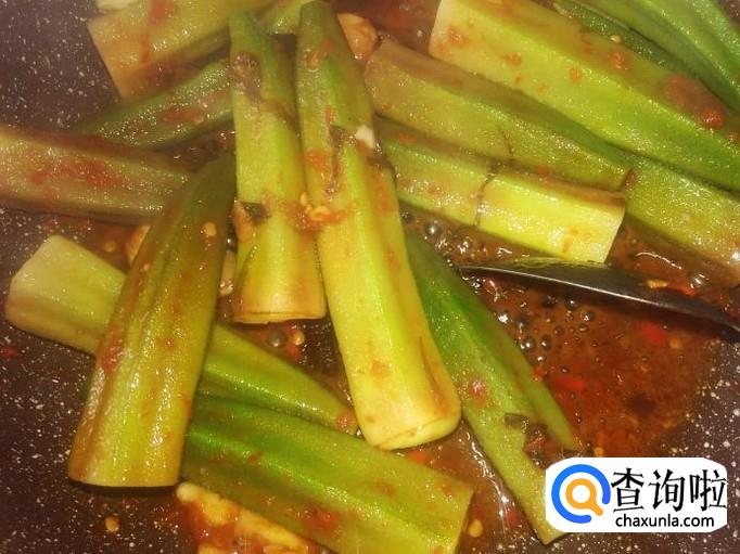 翻炒1分钟左右,熄火。美味好吃的酸辣秋葵就做好了。