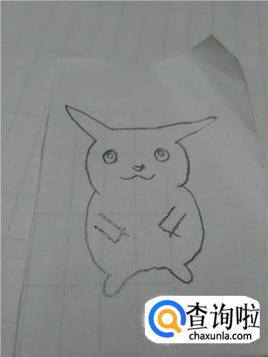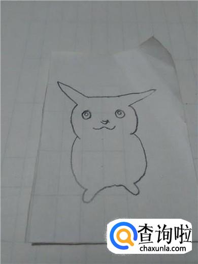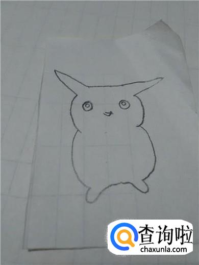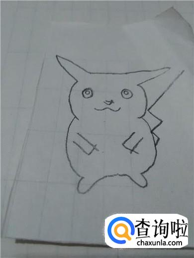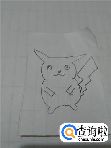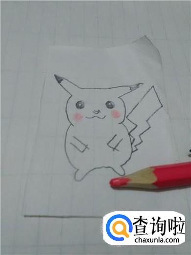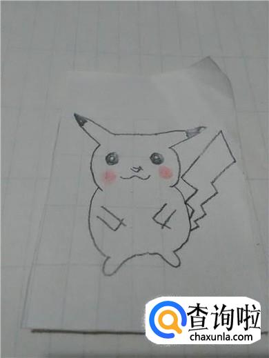 最后用铅笔将耳朵尖和眼睛涂上黑色,用粉色彩笔在嘴的两侧涂两个圆形,表示粉脸蛋,皮卡丘就画完了。
