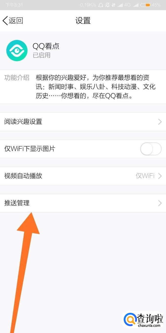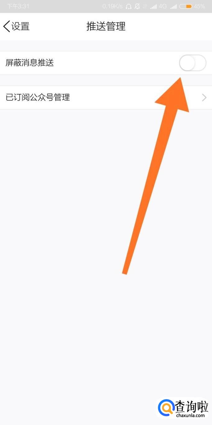 最后勾选“屏蔽消息推送”选项即可关闭看点的推送通知。