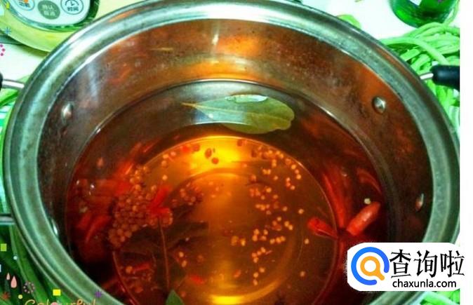 我们需要提前把腌制酸豇豆的汁调好,把花椒大料、盐、小米椒放入锅里面煮开后晾凉。