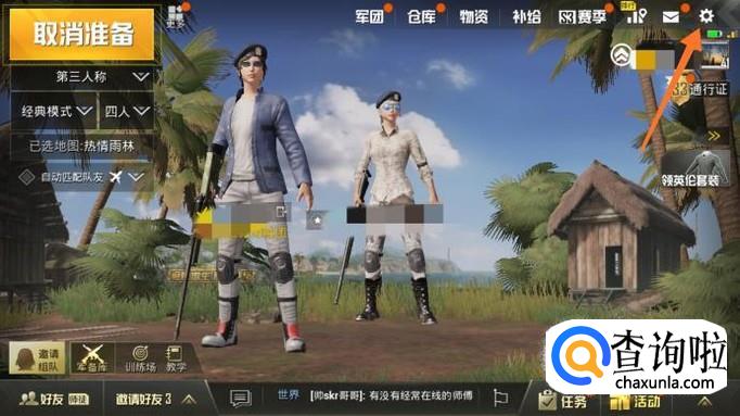 打开刺激战场,来到大厅,点击右上角的小齿轮,如图所示。