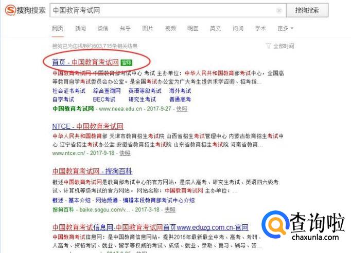 在搜索结果中选择“中国教育考试网”官网,点击进入。