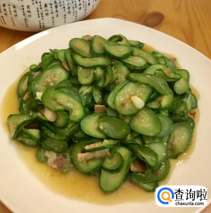丝瓜,五花肉,葱,蒜,花生油,盐等等