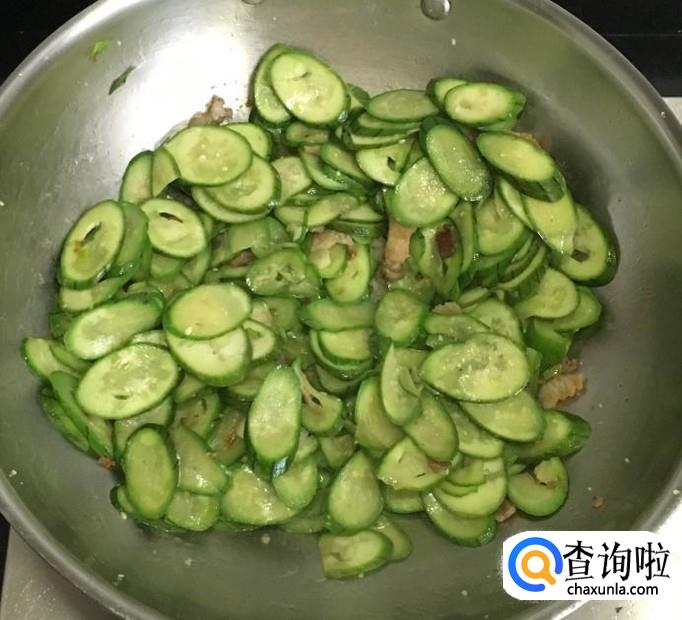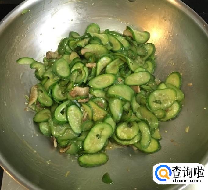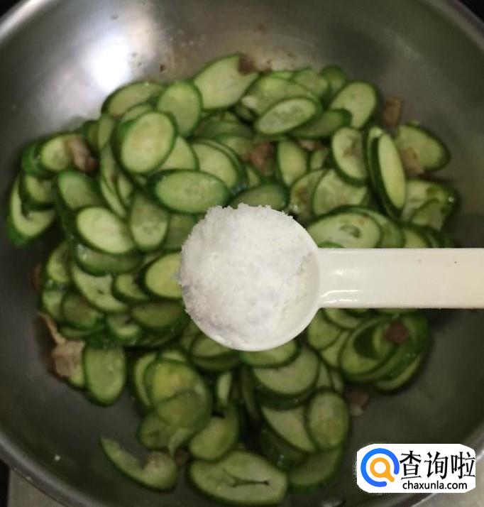 炒至丝瓜片变色后加入适量的盐调味继续翻炒均匀