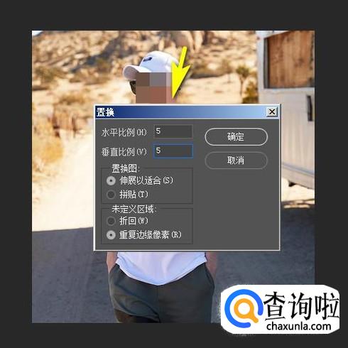 这时,弹出一个置换设置框,如下图所示,设置参数,再点确定。