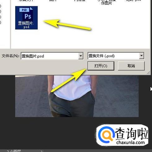 下面,举例演示置换滤镜的使用方法。把一张图片素材拖入到PS中。接下来,通过置换滤镜在人物衣服上添加图案。