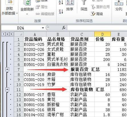 分类汇总的操作方法: