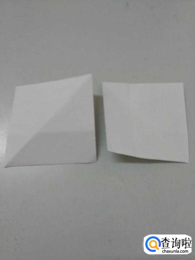 准备两张正方形的纸,要求一样大,先把一张正方形角与角对折后打开,得到中间的两条线。