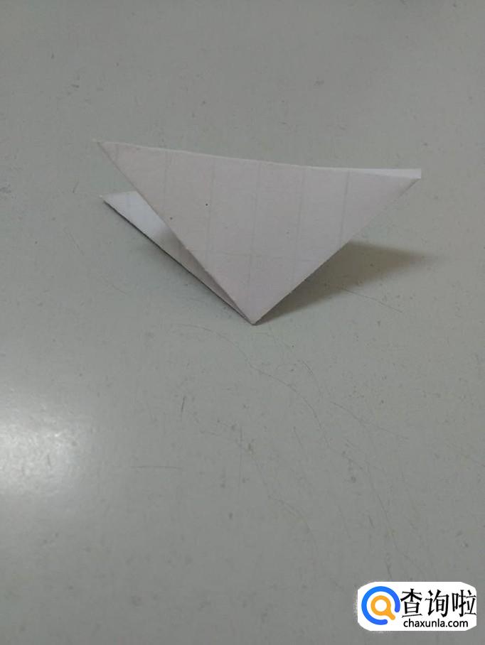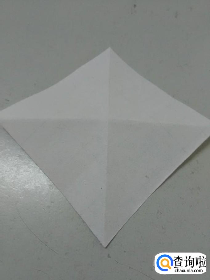 将正方形一个角向对面对折。