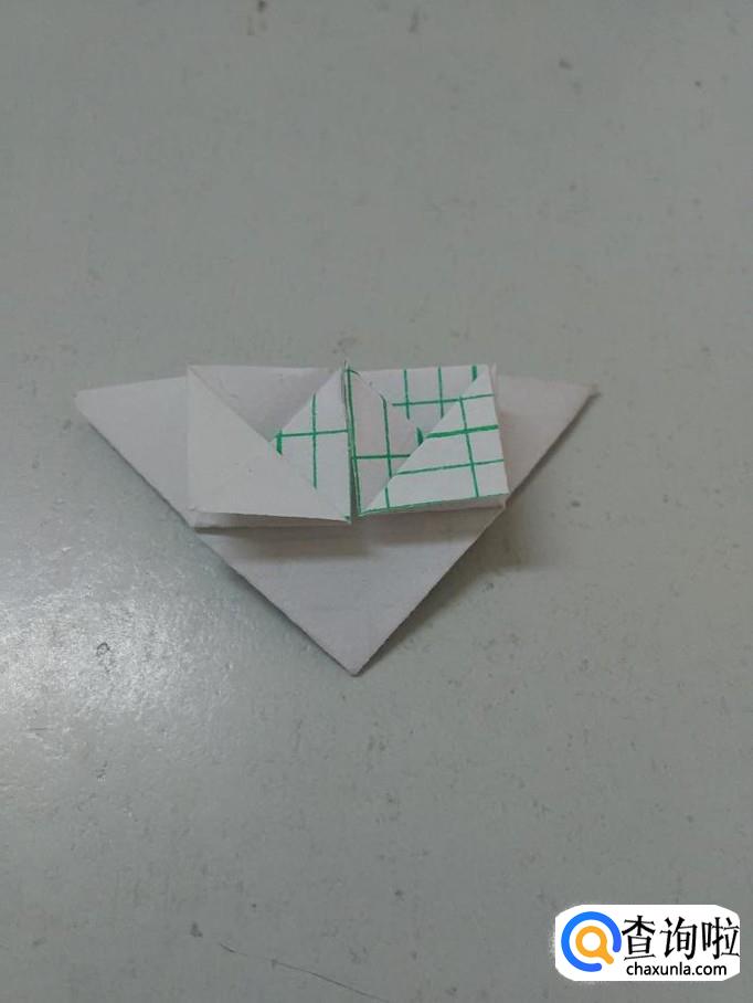 把上面的角向下折,两边按平,一层塔就折好了。