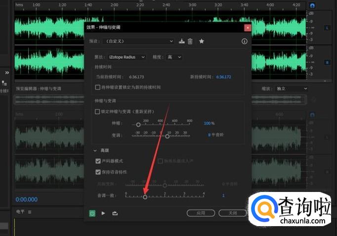 选择打开或关闭保持声音特性,打开的话,变调后于原声更接近