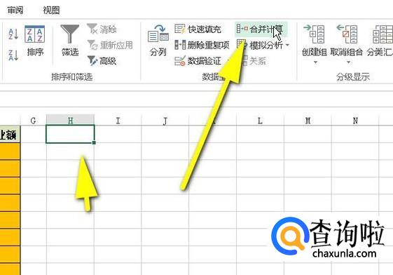 在H1单元格点一下,再点开数据选项卡,从中选择:合并计算