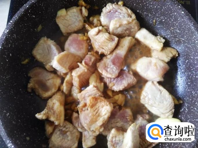 然后放板栗进去翻炒均匀,加1碗水进去。