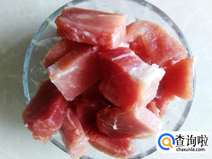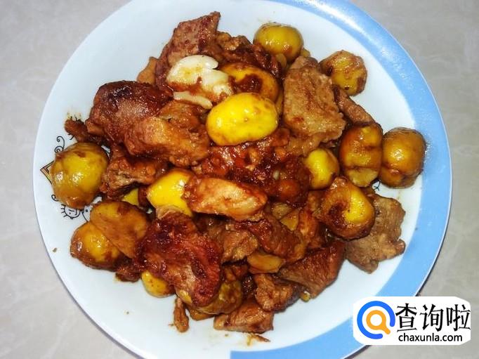 板栗200克,猪肉200克,姜蓉、蒜米适量,生抽、料酒、老抽适量。
