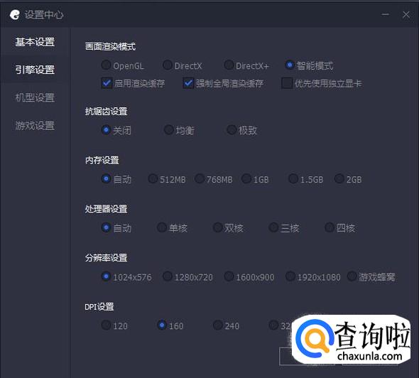在引擎设置中,倘若了解对应参数的话,可以进行相关设置,如果不太了解,可以设置为“智能模式”或“自动”